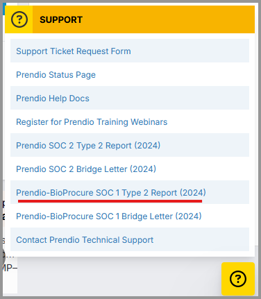 To find the most recent SOC I report, navigate to the Dashboard in Prendio and click the Support table link on the bottom right:
