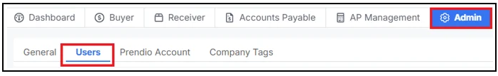 In the Admin role, locate the Users tab: