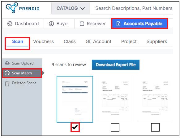 Navigate to the Accounts Payable > Scan > Scan Upload. Check off the bottom of the uploaded invoice: