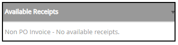 The Available Receipts column will indicate that this is a Non PO Invoice - No available receipts.