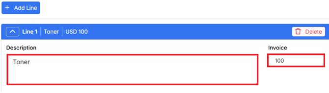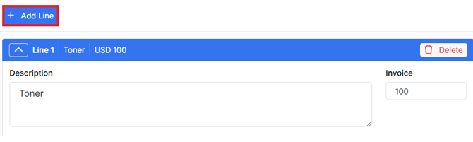 If additional lines are needed, select Add Line: