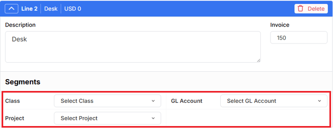 Ensure that Accounting Segments are completed for each line: