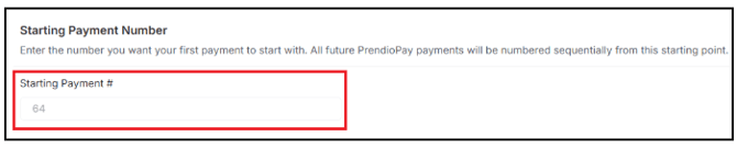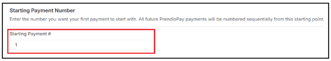 A Starting Payment Number can be added to indicate the number the first payment will start with. This field is automatically defaulted to 1, but can be adjusted:
