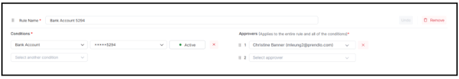 The rule will display with the rule name and description summarizing the conditions and assigned approvers: