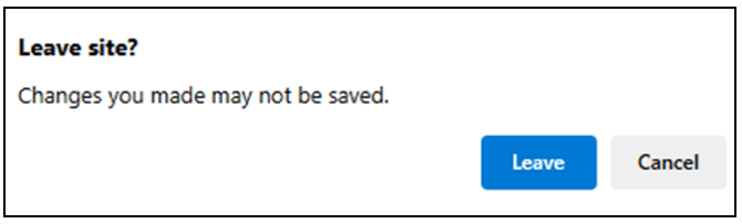 When attempting to leave the page without saving, a modal window will prompt to save or discard changes: