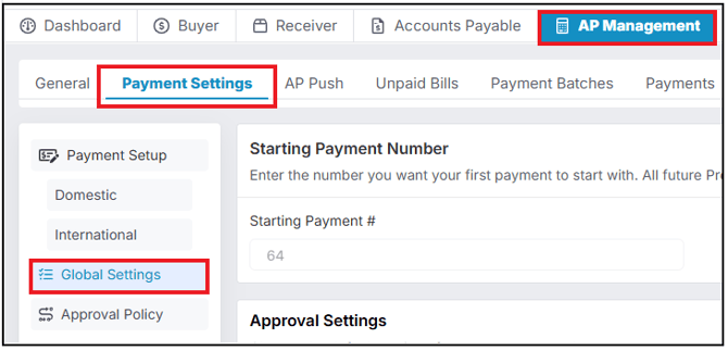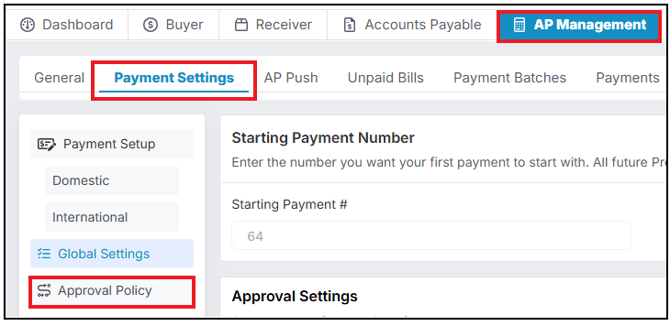 Navigate to AP Management > Payment Settings > Approval Policy:
