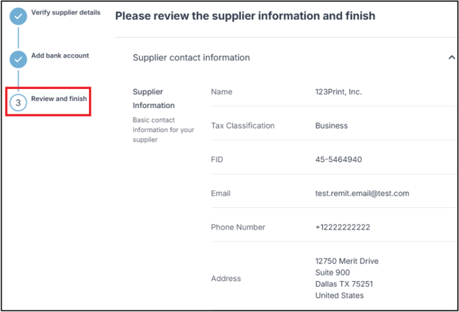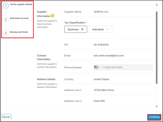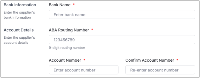 If ACH is selected, complete the Bank Information for the supplier and Continue when complete.