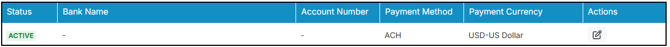 The new payment method will save for the supplier. Updates to a payment method can be made by selecting Edit in the Actions column: