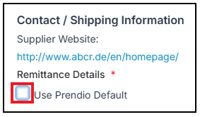 Deselect/uncheck Use Prendio Default to update the supplier's address: