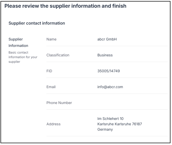 Please note that the correct country for the supplier must be indicated. If a country is not selected for a supplier, an error message appears: