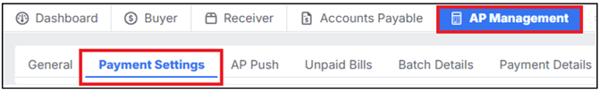 After Payments are enabled Prendio Customer Service, users assigned the Payment Setup role can setup the payment provider via AP Management > Payment Settings: