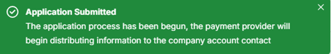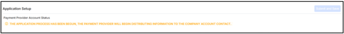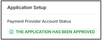 The Application Setup screen will update to indicate that the information has been sent to the payment provider and is waiting to be approved: