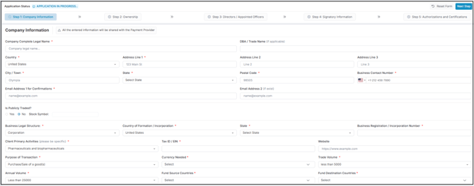 Our payment partner will review the application and reach out in case additional information or clarification is required. Upon approval, the status will update to Approved: