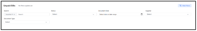 Request Bill Payments - If vouchers have been pushed to an ERP system and paid, users can select the vouchers in Unpaid Bills followed by Request Bill Payments. Prendio will detect that the vouchers have been paid and move the vouchers from Unpaid Bills to Paid Bills.