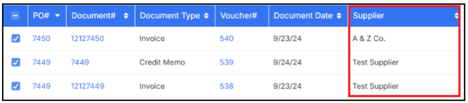 Vouchers from multiple suppliers can be selected for the same payment batch: