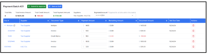 Payment batches can also be saved as Draft in case users need to come back to the payment at a later time: