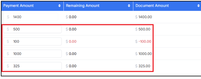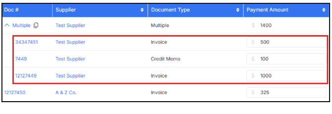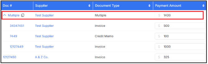 If Credit Memos are included in the batch, these will net out the payment amount: