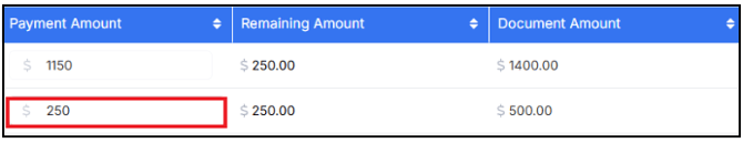 After the Payment Amount is adjusted, the Remaining Amount will update and the status of the voucher will note that it is Partially Paid after the payment is fully processed: