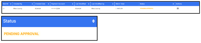 To track the approval of a payment batch, users can select View in the Actions column of the batch: