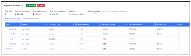 Approvers can decide if they Approve or Reject. Please note that Approvers cannot edit any of the payments or remove any bills from the payment batch: