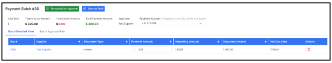If the payment batch is Rejected, users can resubmit after making the necessary adjustments.