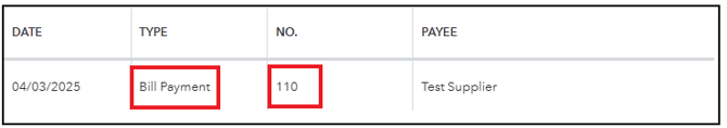 Payments pushed to an ERP system will appear as a Bill Payment with the Payment Number generated in Prendio to reference.