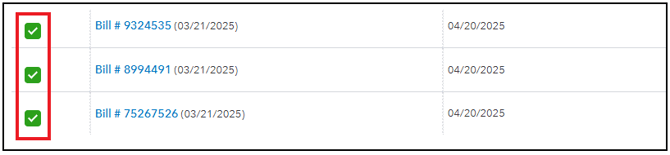 Users can select the vouchers to be paid in a batch by checking the box to the left of each voucher:
