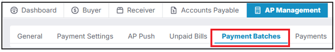 After a payment batch clears approvals, users can view the batch in Payment Batches: