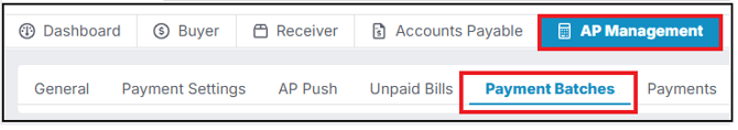 Once Prepare Batch is selected, users will be directed from Unpaid Bills to the Payment Batches tab: