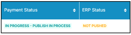 The status of the payment batch in the Payments tab will initially be In Progress - Publish in Process. They have not yet been pushed to an ERP system yet and the ERP Status will note this as Not Pushed: