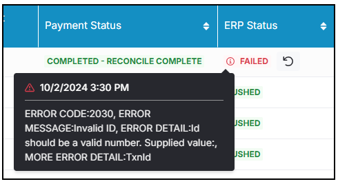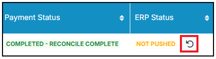 If the status is Completed - Reconcile Complete but the ERP Status is Not Pushed or Failed, users can attempt another Push by selecting the Refresh button: