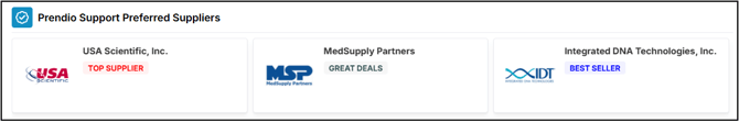 Users can place an order with any supplier in Prendio for merchandise or services. Prendio partners with several preferred suppliers and suppliers that offer punchout capabilities to offer clients a competitive and streamlined purchasing process.