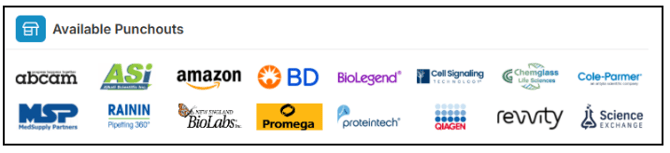 Please note that not all punchouts are available outside of the United States. For international clients, we have the following punchout suppliers available.
