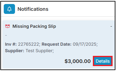 A requester will also receive an alert via Notifications on the Dashboard. Select Details to view the request: