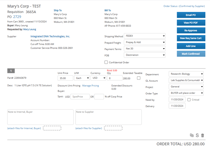 Please note that an order must have a PO number assigned before adjustments can be made. POs in the approval process cannot be adjusted until clearing approvals.