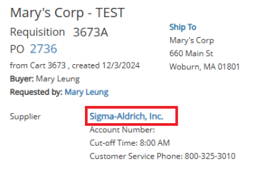 The PO Edit page will display on the next screen. Locate the supplier located on the top left: